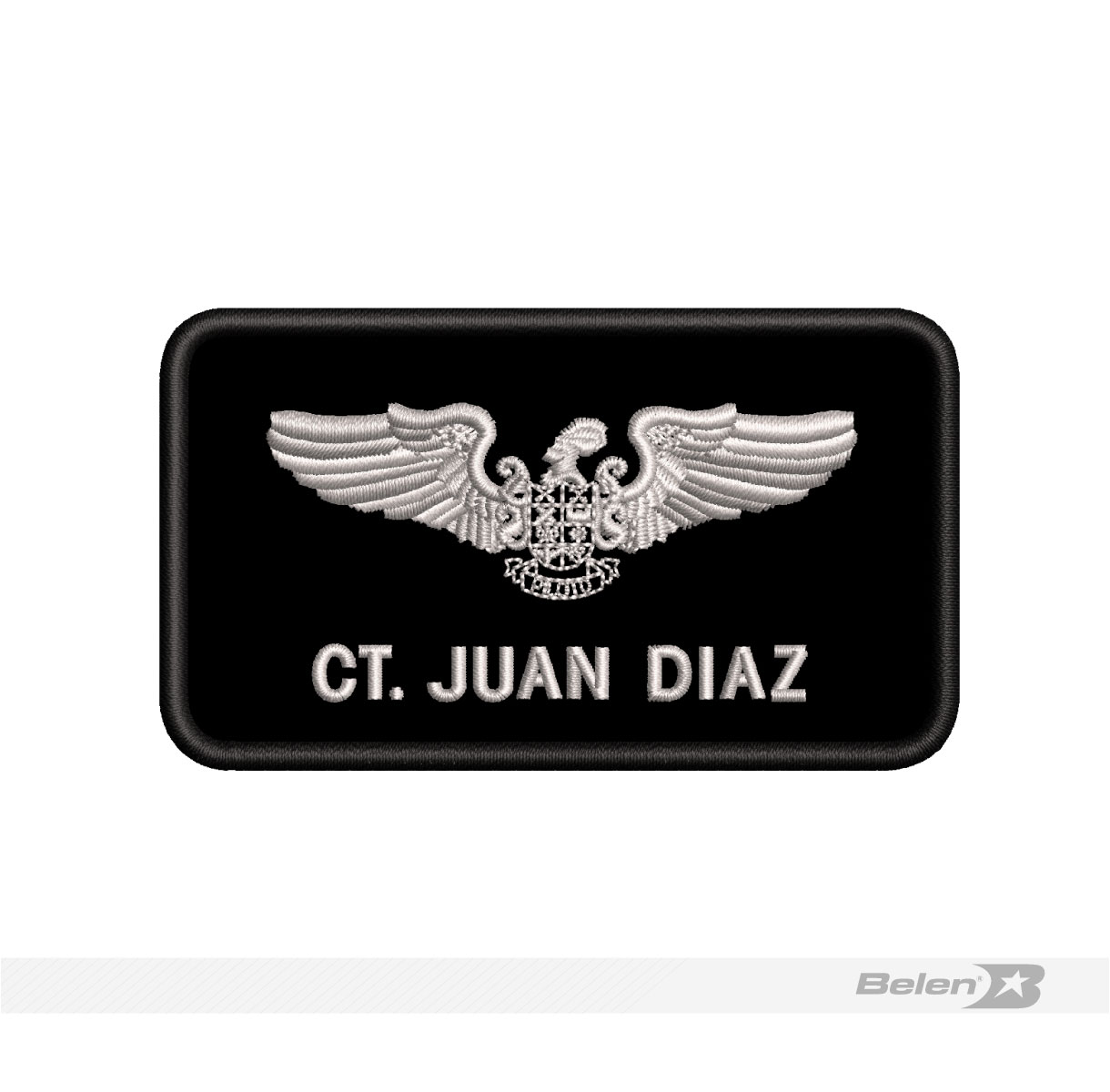 Las imágenes presentadas son esquemas digitales de referencia. El producto final se entrega bordado en los colores, tamaños y especificaciones reglamentarias del uniforme, con la calidad y precisión que caracterizan a Belén.