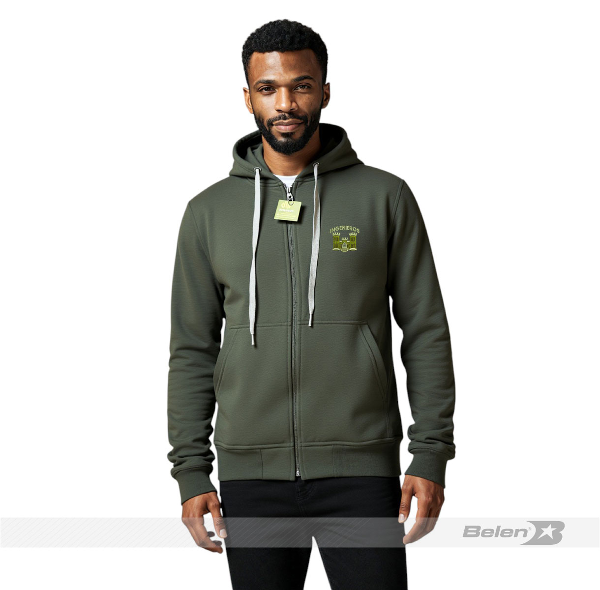 Cada prenda incorpora bordados tonales con símbolos de inspiración militar, que evocan respeto, identidad y pertenencia. Además, cuentan con capucha ajustable mediante cordón y resortes en los puños y el borde inferior que aseguran un ajuste cómodo y funcional.